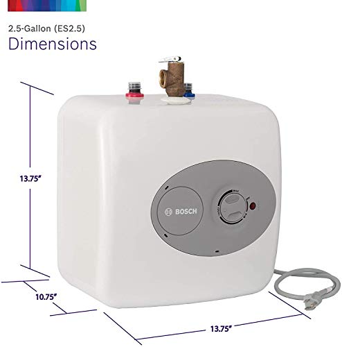 Bosch Electric Mini-Tank Water Heater Tronic 3000 T 2.5-Gallon (ES2.5) - Eliminate Time for Hot Water - Shelf, Wall or Floor Mounted
